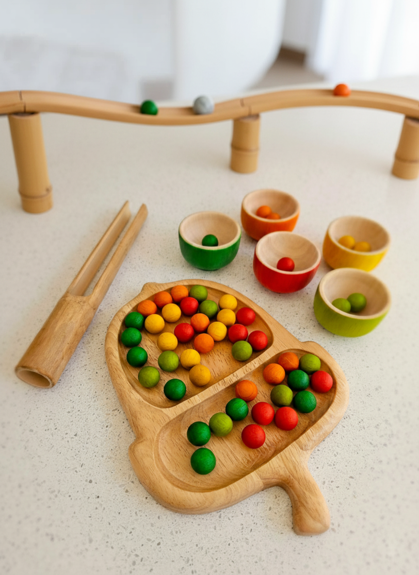 From sorting acorns and treasures to designing flowing bamboo channels for marbles or water, this bundle invites children to explore balance, precision, and creativity through hands-on play.